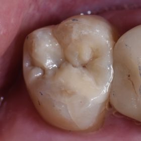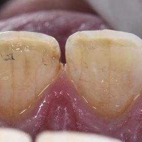 Class IV on tooth 23 (FDI 3.2) Isolation: Dermadam Guidance: Free-hand with pre-crimped Mylar Bonding system: Total-etch using UltraEtch and Peak Universal Bond Restorative: Mosaic shades EN, A3.5, brown tint […]