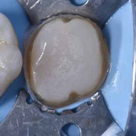 Setting up the reconstruction of a severely broken down pin-retained complex composite on this lower second molar. The pin was removed and the space occluded incrementally using SDR+ A1 as […]