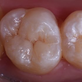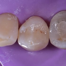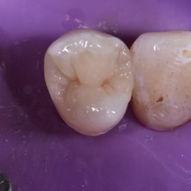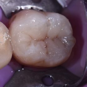 Large amalgam restoration featuring comminuted vertical fractures on the M and D marginal ridges, indeed a near-complete transverse stained hairline fracture noted in the floor of the preparation extending from […]
