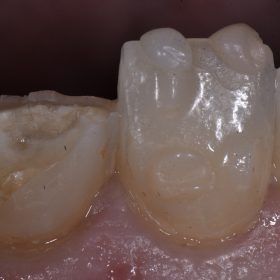Cracked teeth are hard to restore beautifully. This 37 had a mesial vertical greenstick fracture with recurrent caries. After micro air abrasion with 27 micron aluminum oxide and a selective […]