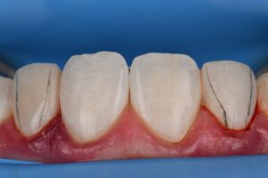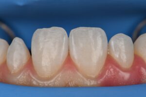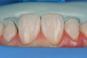 Digital Smile Design (DSD)-guided composite veneers to correct peg laterals. White maverick effects placed to mimic natural hypocalcified flecks in the pre-operative situation.