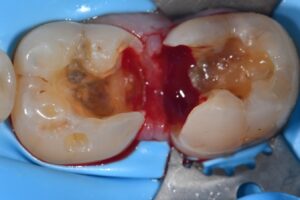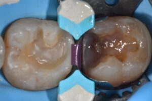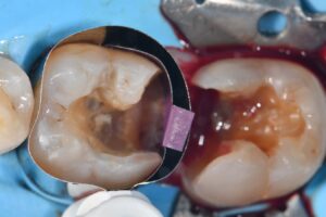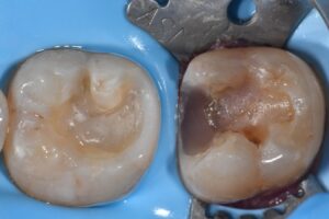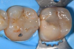 Direct complex restoration featuring peri-crestal caries