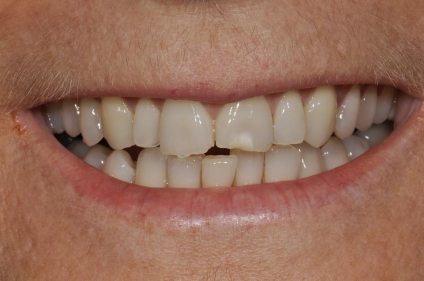 Problem: This 35-year-old female wanted to get rid of unsightly chips and spots on her teeth. She also wanted a more even smile.