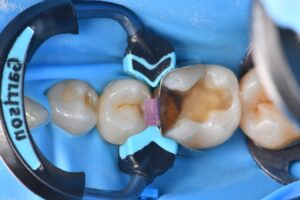 One of the new advantages of the Quad’s extreme cervical adaptation is usually a zero overhang or margin finish situation, as demonstrated in this case.