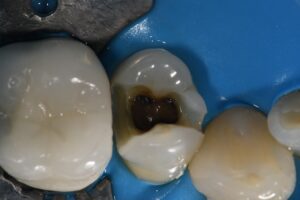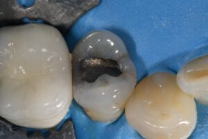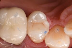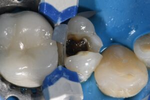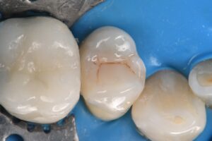 It’s always difficult to decide which vertical hairline fractures to chase in a compromised peripheral enamel rim.  Chasing and selectively removing the significant hairline fractures with penetration past the DEJ ensures that these superhighways are sealed and don’t have an opportunity to seed caries insidiously.
