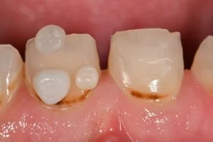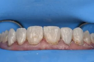 // Placed with DSD-guided gingival recontouring with Ultradent Gemini dual-wavelength Superpulsed diode laser