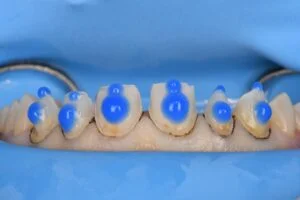 // Layered application of Ultradent Forma, which contains silanated zirconia and ytterbium trifluoride for optimized opalesence, fluoresence, translucency and strength